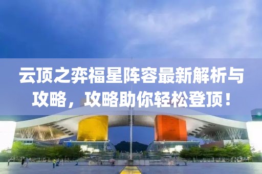 摘要:,,最新云頂之弈福星陣容解析與攻略。該陣容具有強(qiáng)大的戰(zhàn)斗能力,通過合理的搭配和策略調(diào)整,能夠在游戲中取得優(yōu)勢。本文介紹了福星陣容的組成、英雄搭配、裝備選擇以及戰(zhàn)術(shù)運(yùn)用等方面的內(nèi)容,為玩家提供了詳細(xì)的指南。跟隨最新攻略,輕松掌握福星陣容的精髓,助你在云頂之弈中取得勝利。
