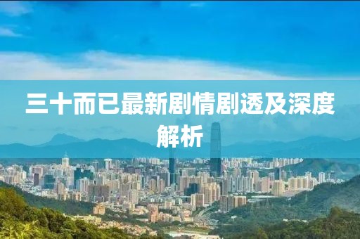 摘要:三十而已》最新劇情劇透,展現(xiàn)了主人公們?cè)谌松匾挲g節(jié)點(diǎn)上所面臨的挑戰(zhàn)和抉擇。劇情深度解析揭示了角色內(nèi)心的掙扎與成長(zhǎng),以及他們?cè)谑聵I(yè)、家庭和愛情等方面的種種困境。通過細(xì)膩的人物刻畫和情節(jié)展開,該劇為觀眾呈現(xiàn)了一幅真實(shí)而立體的生活畫卷。