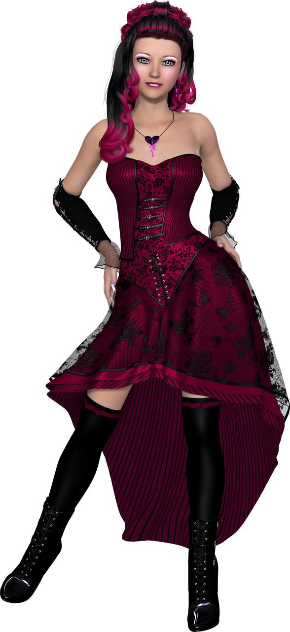 女士:粉色蕾絲連衣裙搭配白色長筒襪和鞋子,浪漫女人味十足。